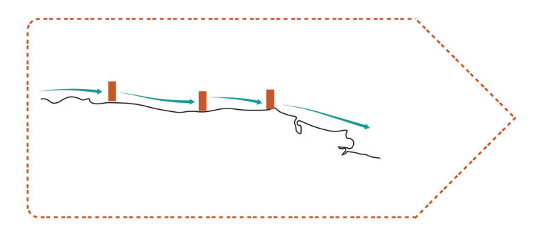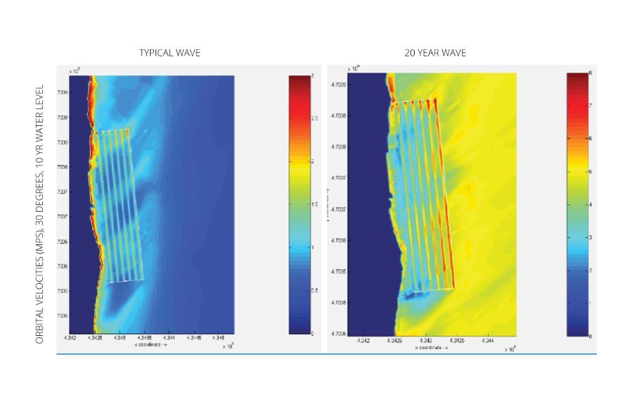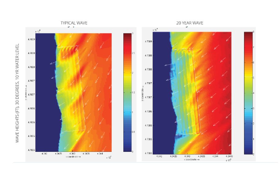 Our design was based on a strategy to temporarily capture the benefits of moving sediments while simultaneously reducing erosive wave forces with inconspicuous underwater ridges or submerged habitat reefs.